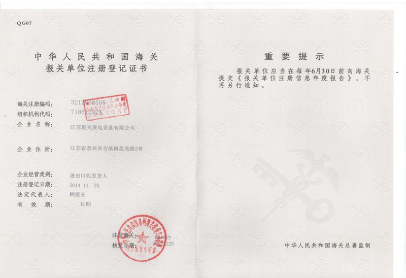 海關(guān)單位報關(guān)單位注冊登記書
